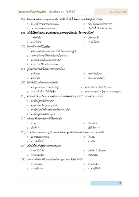 ***แบบทดสอบปลายภาคเรียน - วิชาสังคมศึกษา ป.3 (ชุดที่ 4)***